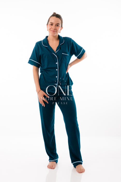 Pijama Dama - Pantalón / Manga larga botón - Negro liso Pijama Dama - Pantalón / Manga larga botón - Negro liso